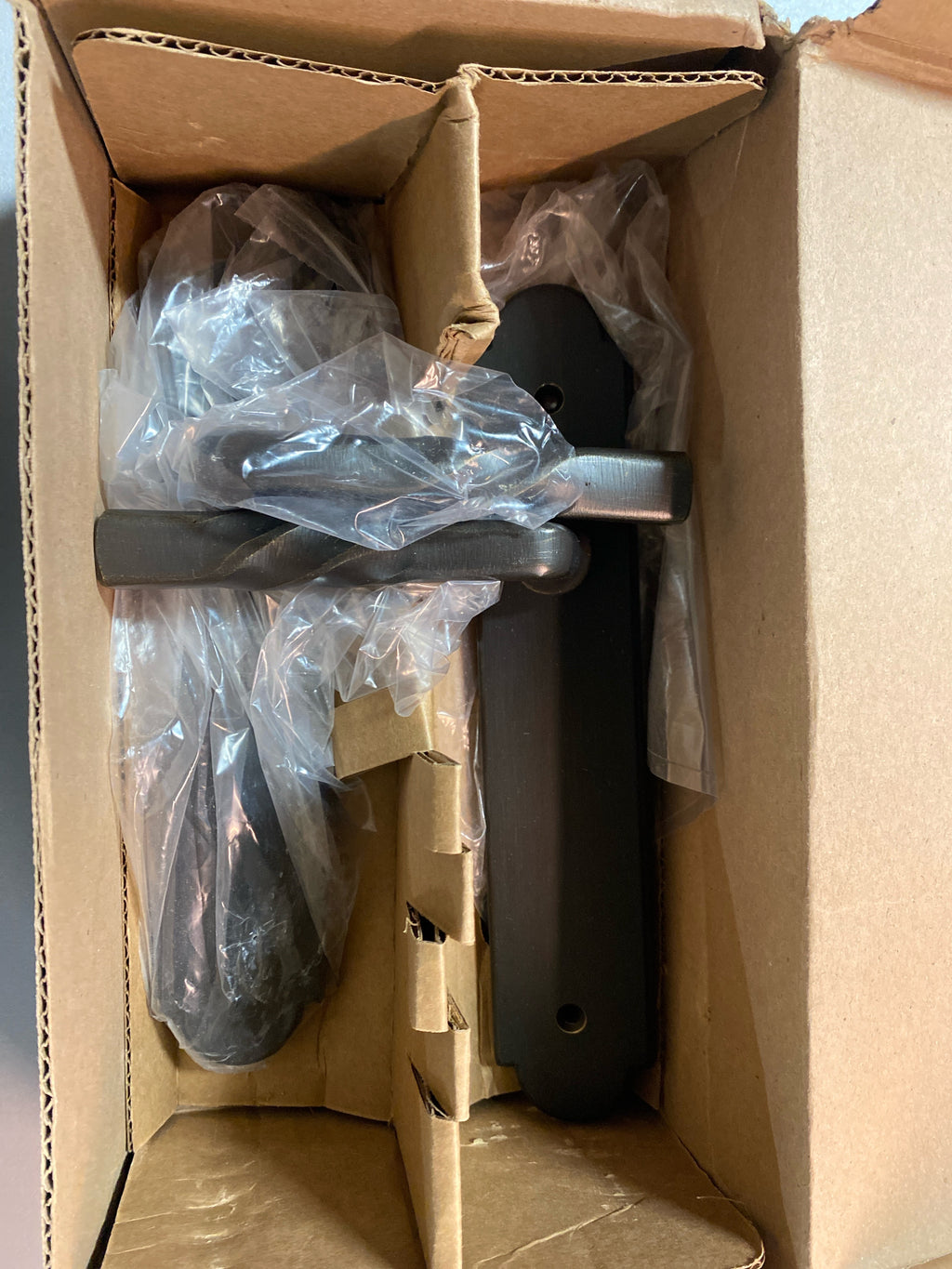 Emtek 1425MB Sandcast Bronze Door Configuration 4 Inactive Multi Point Arched Trim Lever Set with American Cylinder Above Handle - Medium Bronze