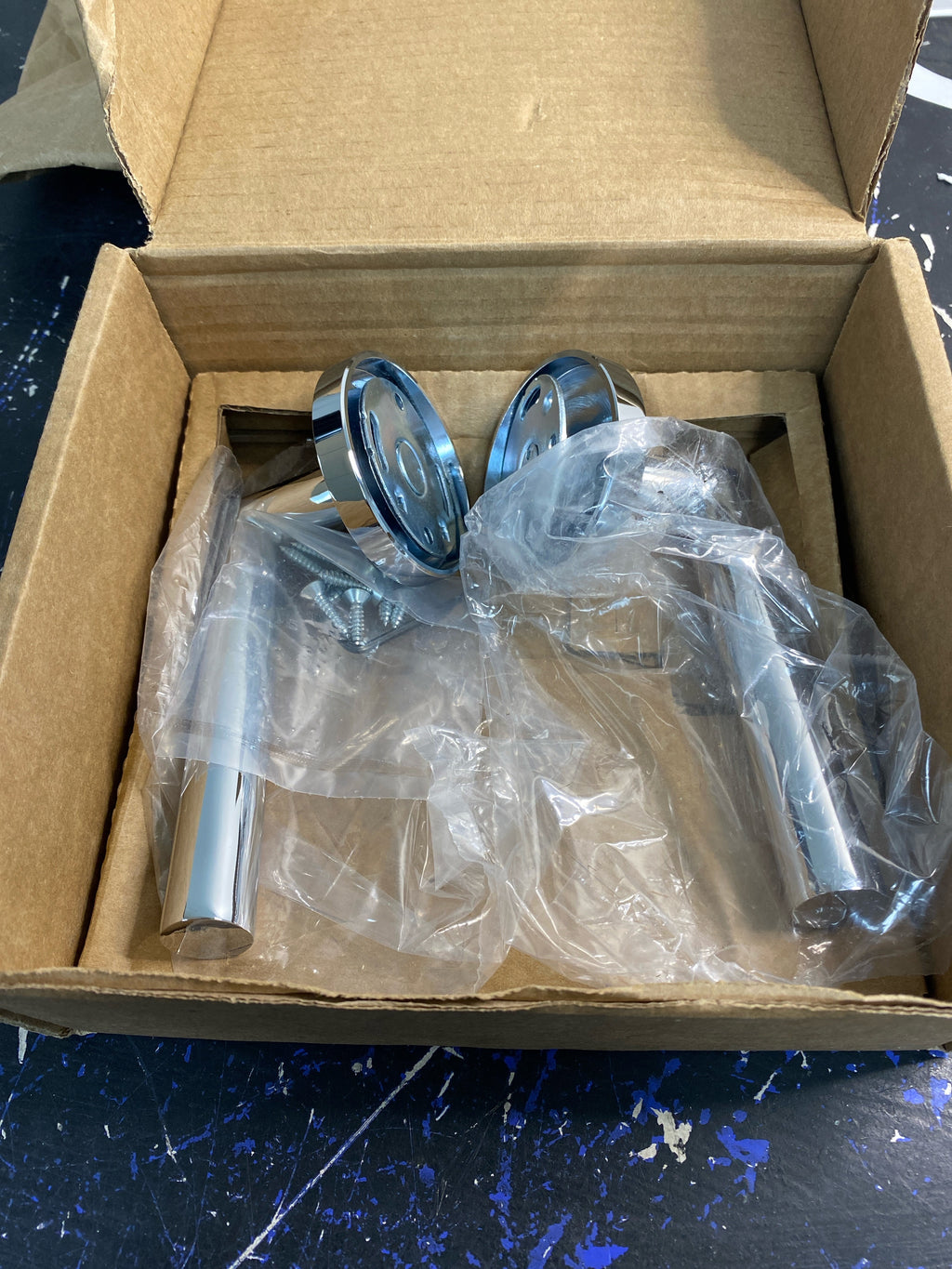 Emtek 5059STUUS26LH Stuttgart Left Handed Non-Turning Two-Sided Dummy Door Lever Set with Disk Rose from the Brass Modern Collection - Polished Chrome