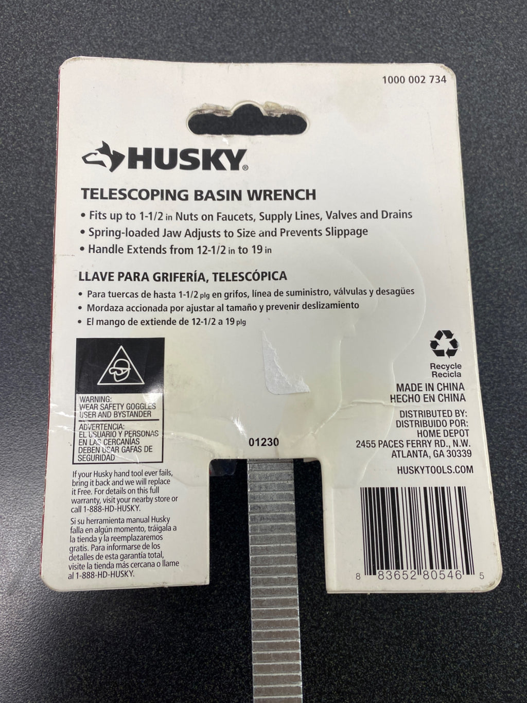 Husky 80-546-111 1-1/2 in. Quick-Release Telescoping Basin Wrench