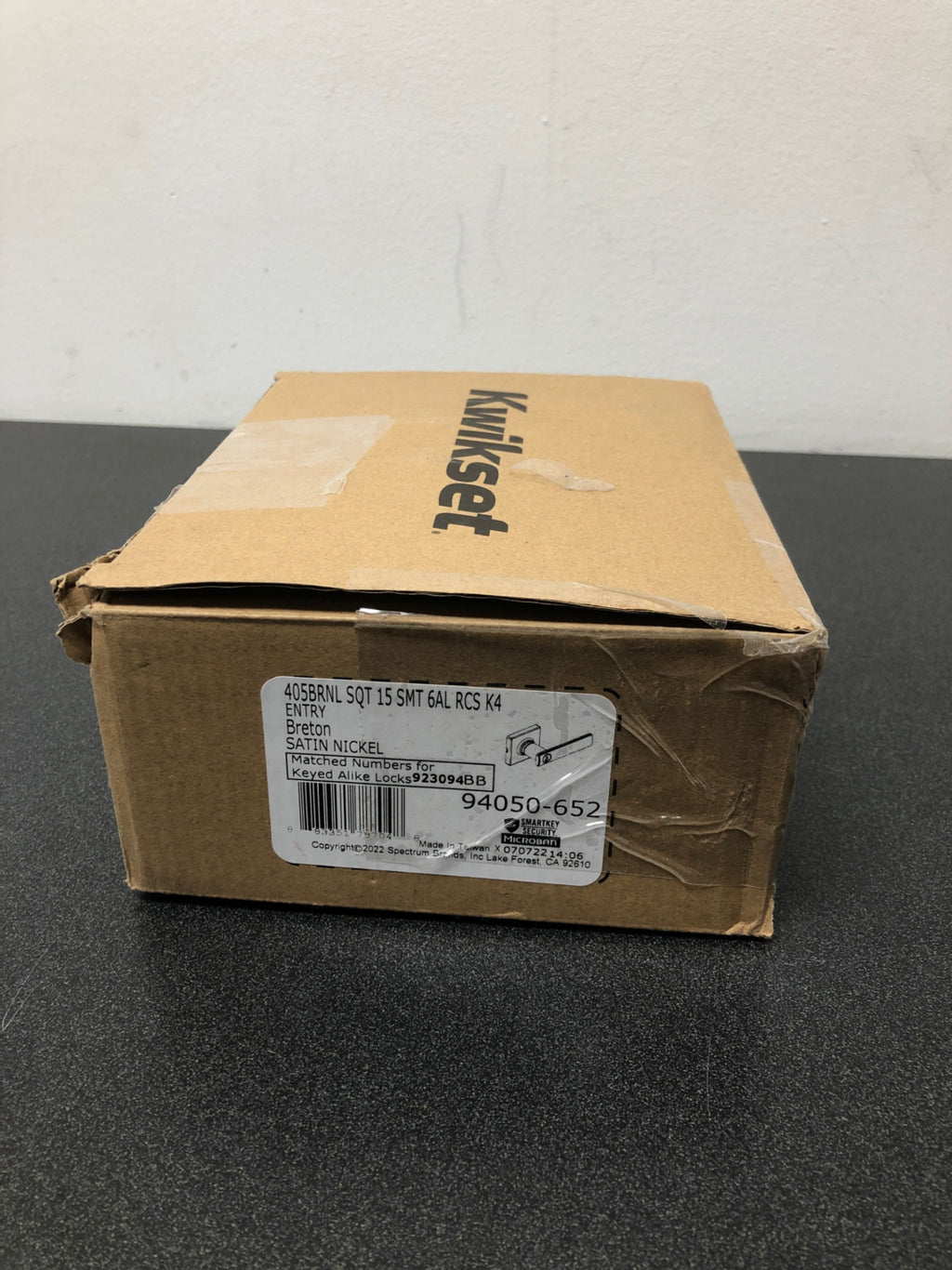 Kwikset 405BRNLSQT-15S Breton Single Cylinder Keyed Entry Door Lever Set with Square Rose - Satin Nickel