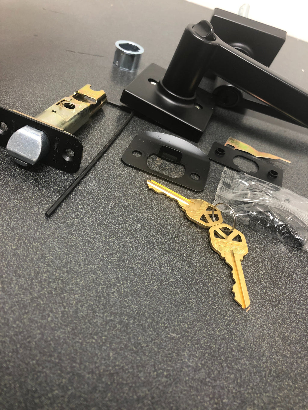 Kwikset 405CSLSQT-514S Casey Single Cylinder Keyed Entry Door Lever Set with Square Rose - Iron Black