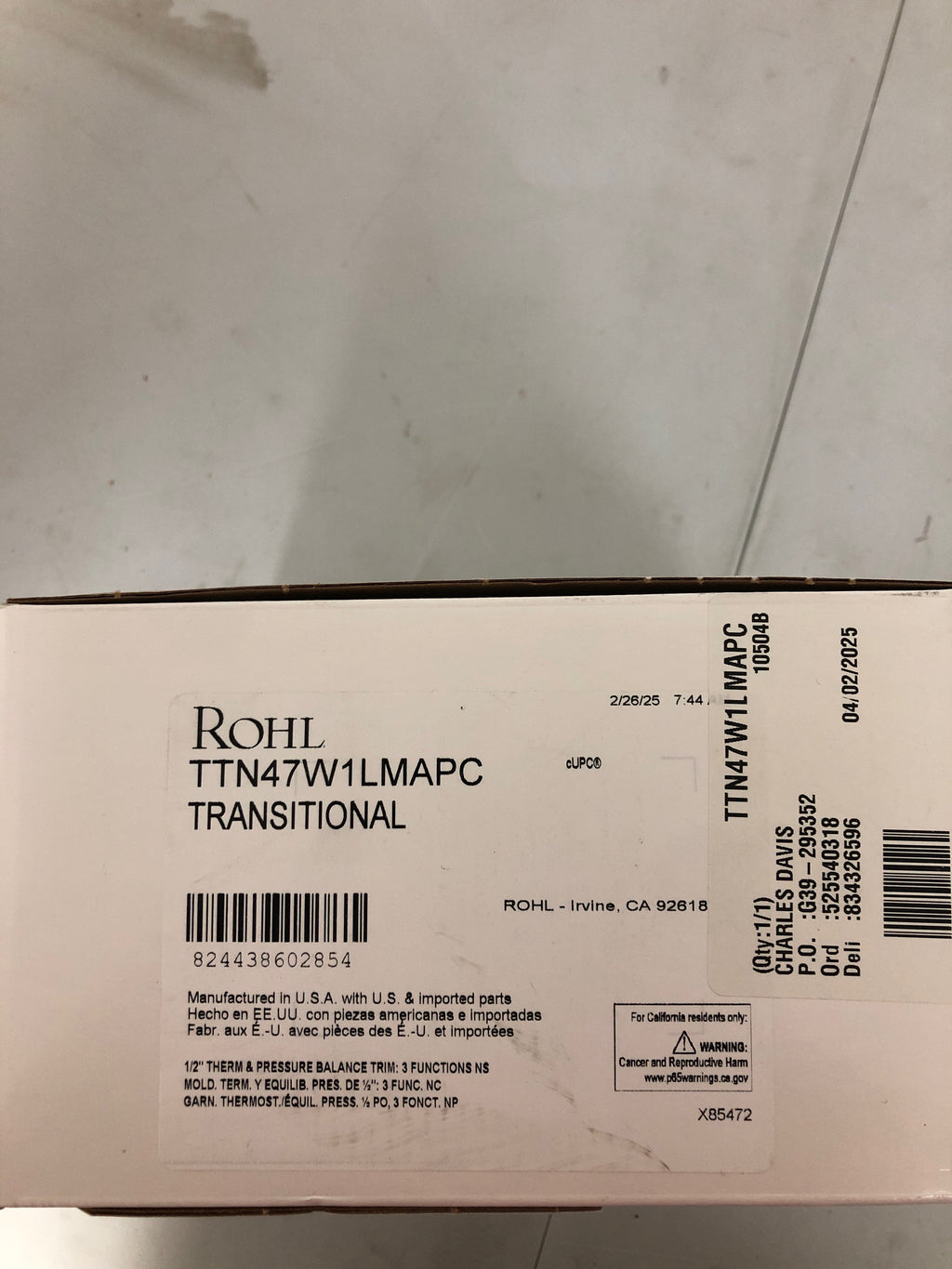 Rohl TTN47W1LMAPC Three Independent Function Thermostatic Valve Trim Only with Single Cross / Lever Handle, Integrated Diverter, and Volume Control - Less Rough In - Polished Chrome