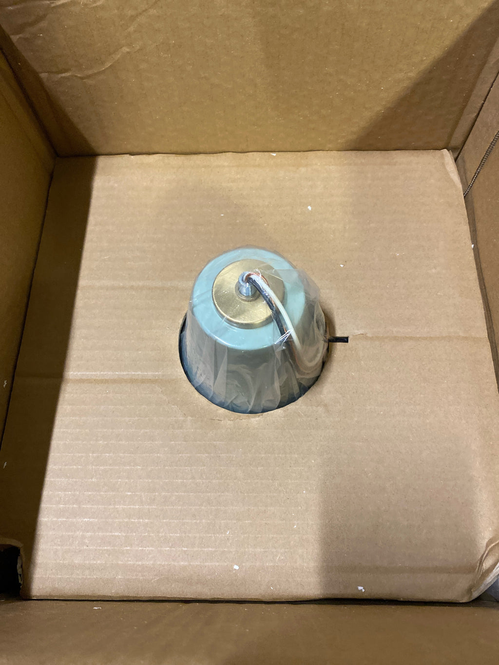 Lark Haddie 83417SF Modern Pendant Light - Customize Height from Even or Sloped Ceilings, Unique Mid Century Silhouette - Seafoam + Lacquered Brass
