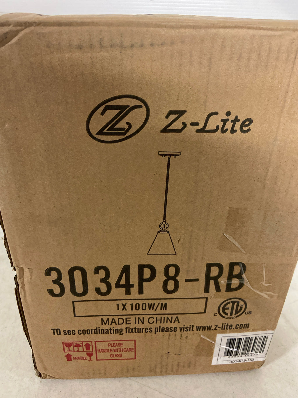 Z-Lite 3034P8-RB Harper 8" Wide Mini Pendant - Rubbed Brass