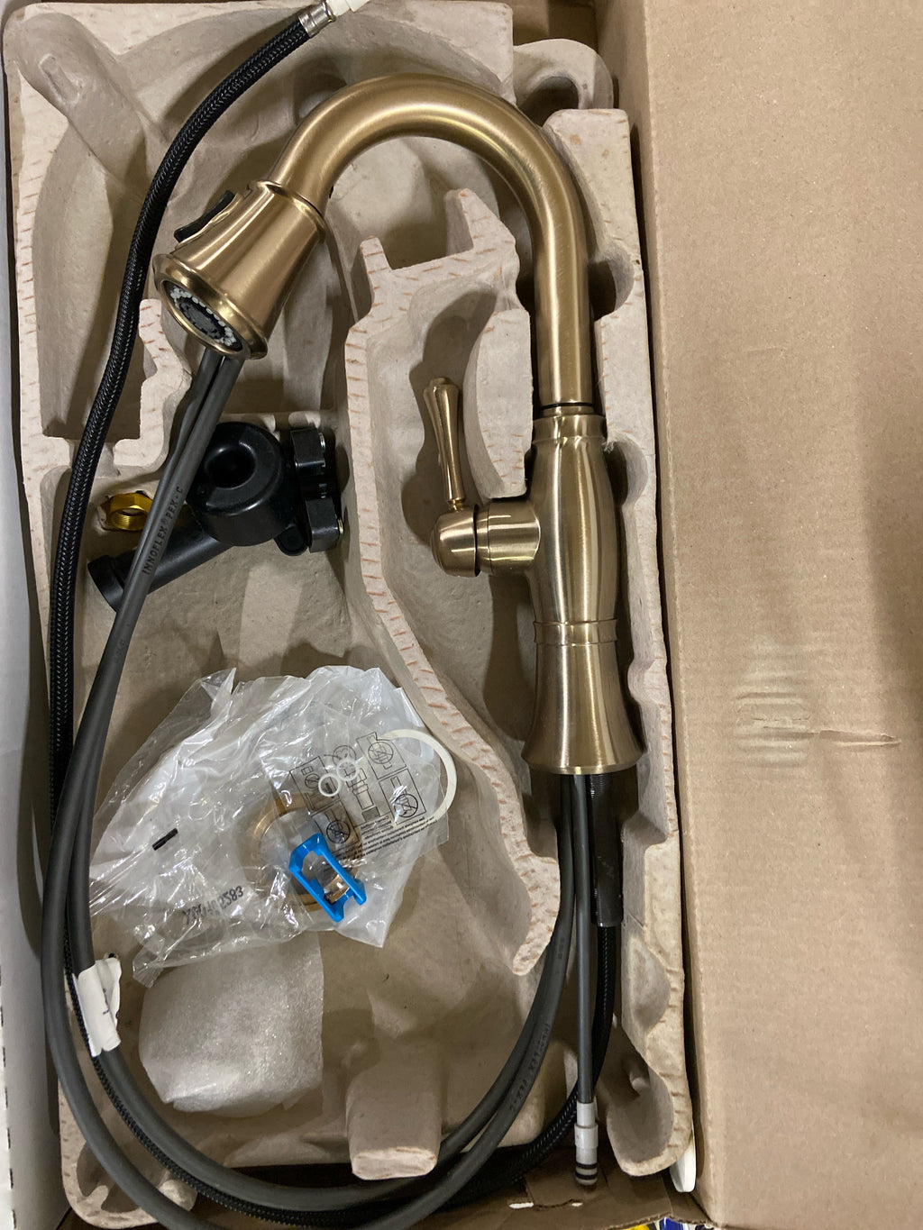 Delta Cassidy Brushed Gold Bar Faucet with Pull Down Sprayer, Modern Single Hole Prep Sink Faucet, Single Handle, Lumicoat Champagne Bronze 9997-CZ-PR-DST