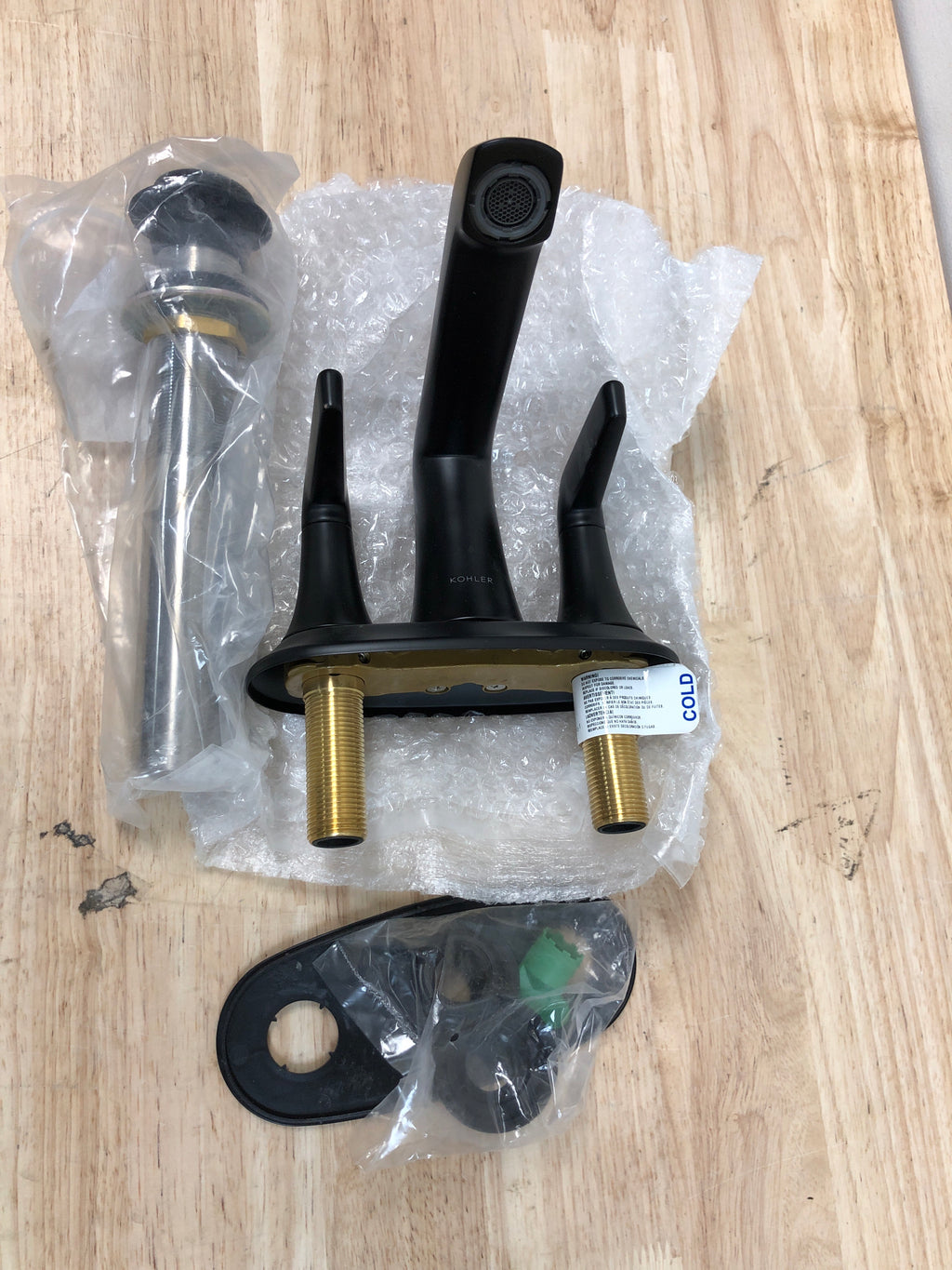 Kohler K-22021-4-BL Tempered 1.2 GPM Centerset Bathroom Faucet with Pop-Up Drain Assembly - Matte Black