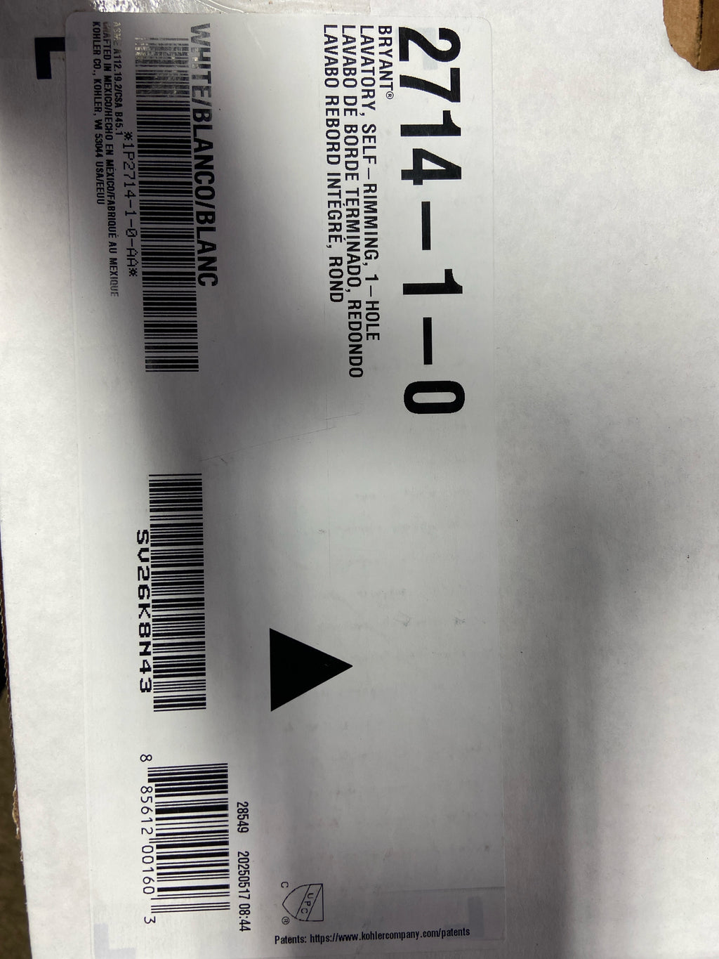 Kohler K-2714-1-0 Bryant Round Self-Rimming Bathroom Sink with Single-Hole Faucet Drilling, White, 1.375