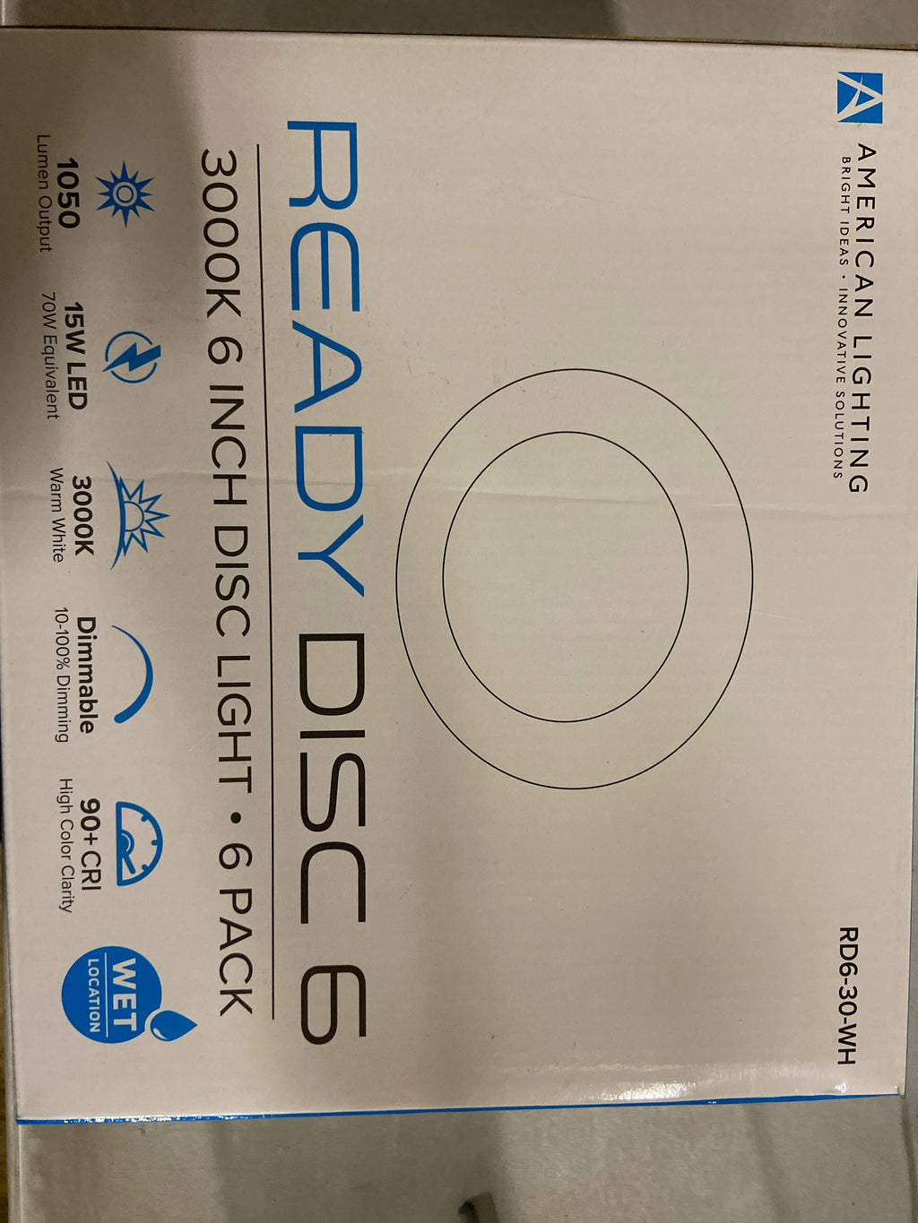 American Lighting RD6-30-WH 6 in. 3000K Slim Ready Disc White - Case of 6
